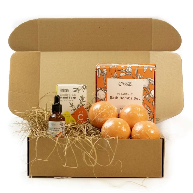 Conjunto de 4 Bombas de Banho Vitamina C: libertam um aroma cítrico luxuoso e deixam a pele macia e renovada.