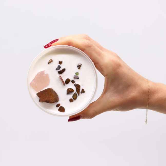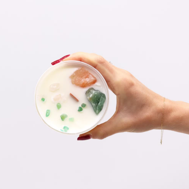 Feitas com cera de soja natural, cristais genuínos e pavio de madeira que crepita suavemente, estas velas foram criadas para nutrir o teu equilíbrio interior e elevar a vibração do teu espaço.